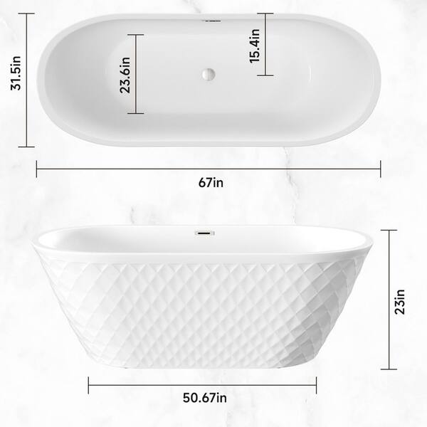 67 in. x 31 in. Acrylic Freestanding Soaking Bathtub in Glossy White with Chrome Center Drain