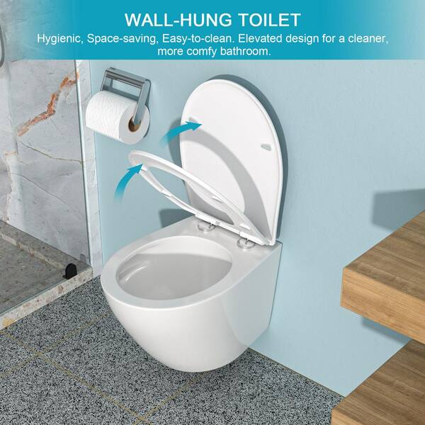 7.08 in. Elongated Wall Hung Toilet Bowl Only in White