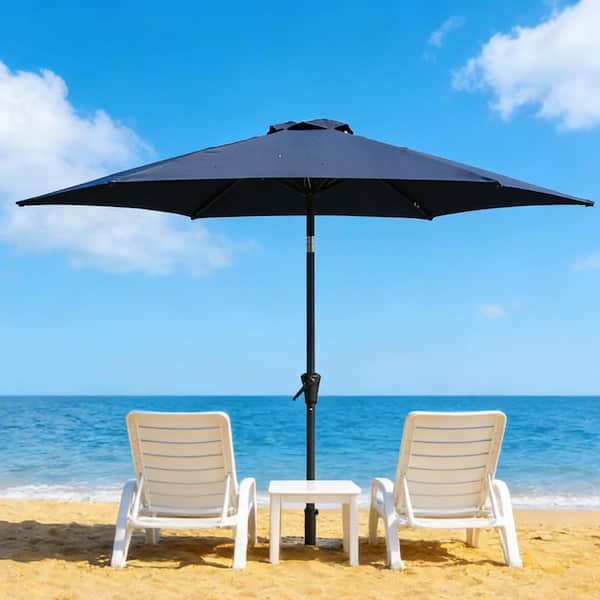 8.9 ft. Navy Blue Outdoor Market Patio Umbrella with 42 lbs. Round Resin Umbrella Base, Push Button Tilt