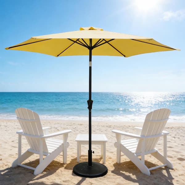 8.9 ft. Yellow Outdoor Market Patio Umbrella with 42 lbs. Round Resin Umbrella Base, Push Button Tilt and Crank Lift