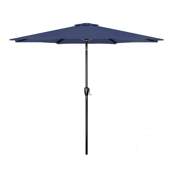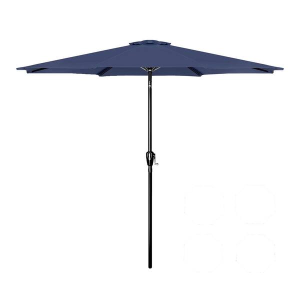 9 ft. Stainless Steel Patio Umbrella in Dark Blue with Push Button Tilt and Crank