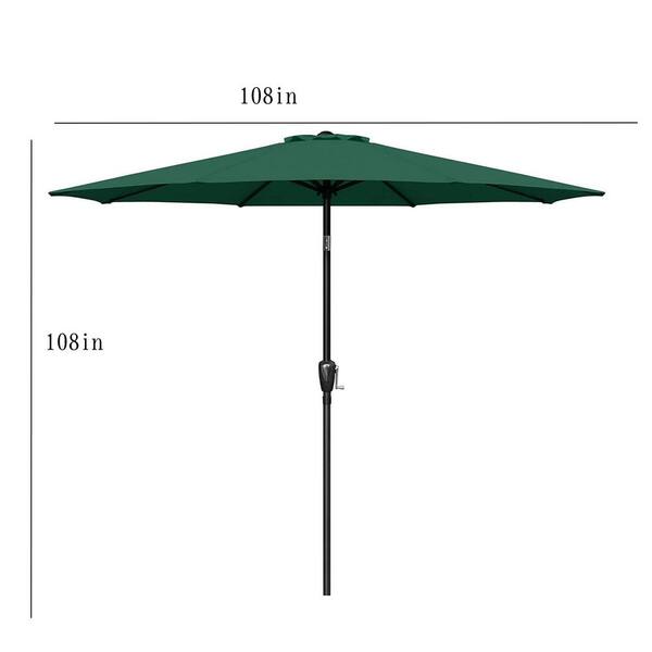9 ft. Stainless Steel Patio Umbrella in Green with Push Button Tilt and Crank