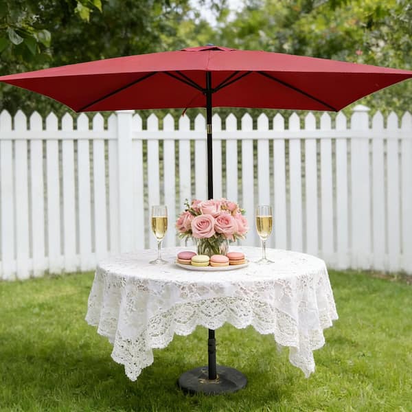 9 ft. Steel Patio Umbrella in Burgundy with Crank and Push Button Tilt