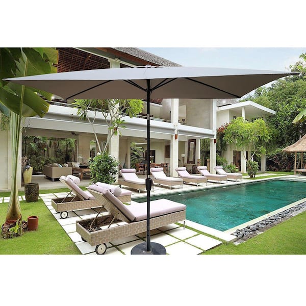 9 ft. Steel Patio Umbrella in Medium grey with Crank and Push Button Tilt