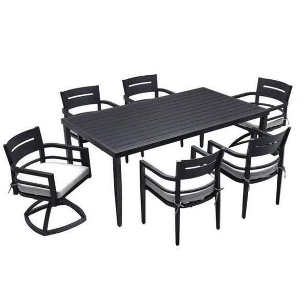 Black 7-Piece Aluminum Outdoor Dining Set with White Cushion