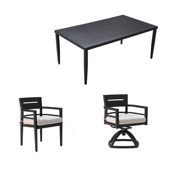 Black 7-Piece Aluminum Outdoor Dining Set with White Cushion