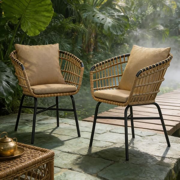 Black Aluminum Outdoor Lounge Chair with Beige Cushions (2-Pack)