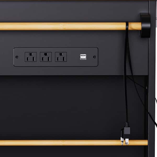 Black MDF Kitchen Cart with Drop Leaf and Power Outlet