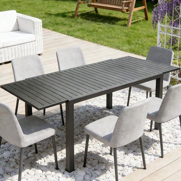 Black Rectangular Aluminum Outdoor Dining Table with Extension