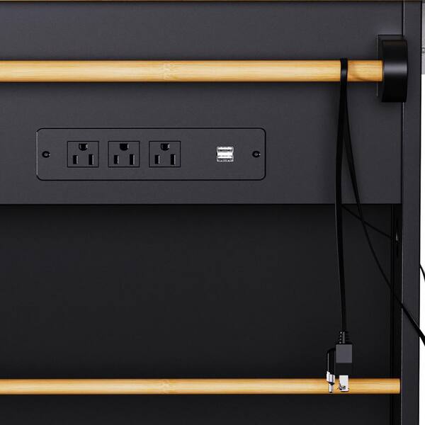 Black Rubber Wood Kitchen Cart with Drop Leaf and Power Outlet