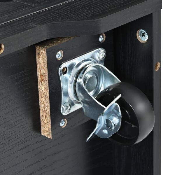 Black Rubber Wood Kitchen Cart with Power Outlet and Drop Leaf