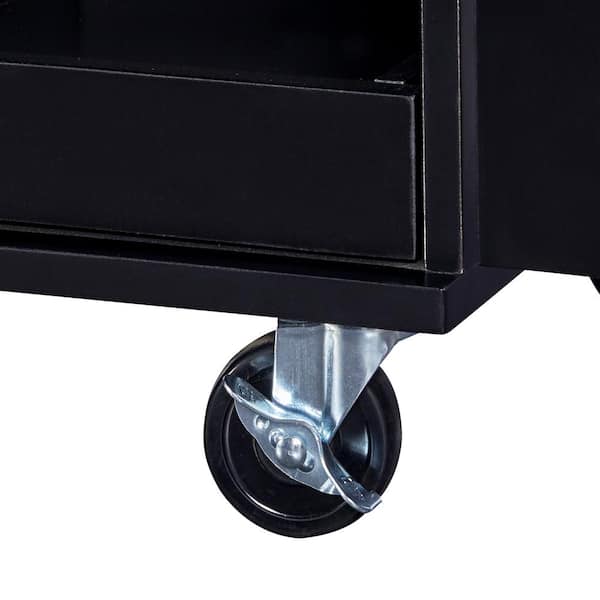 Black Rubber wood Kitchen Cart with Spice Rack and Towel Rack