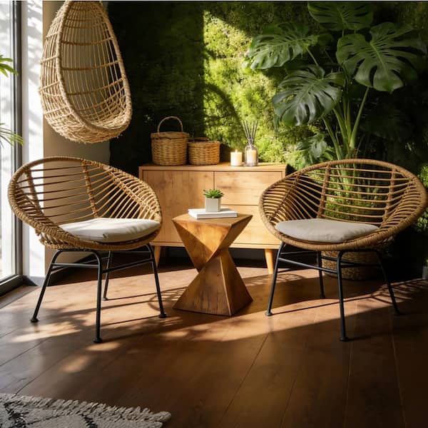 Brown Metal Outdoor Dining Chair with Beige Cushions (2-Pack)