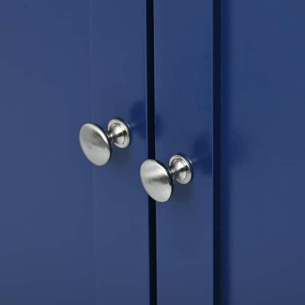 Dark Blue Rubber wood Kitchen Cart with Drop-Leaf and Spice Rack