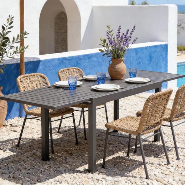 Dark Brown Rectangular Aluminum Outdoor Dining Table with Extension