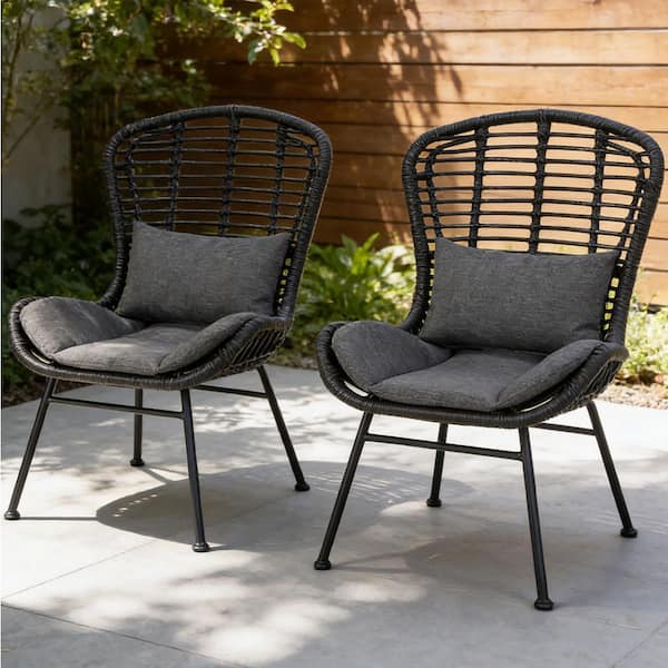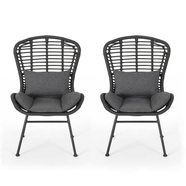 Grey Iron Outdoor Dining Chair with Grey Cushions (2-Pack)