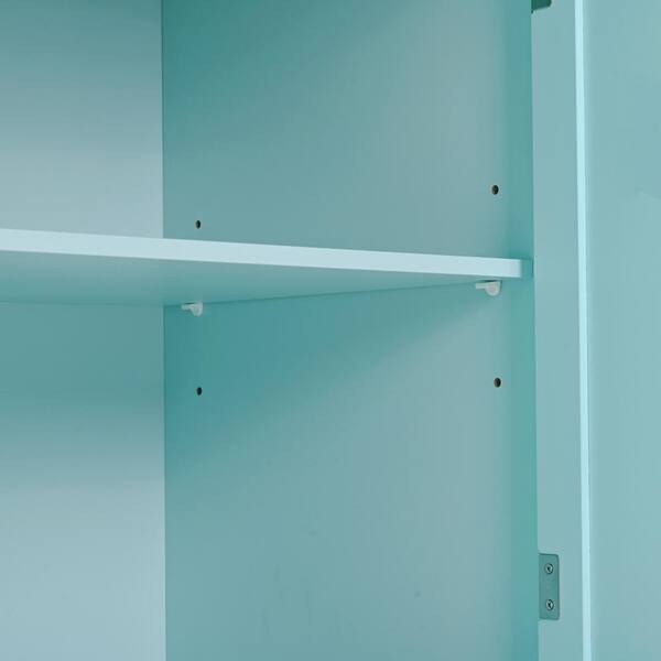 Mint Green Rubber Wood Kitchen Cart with Spice Rack and Towel Rack