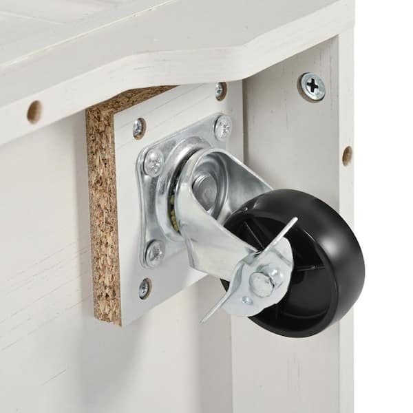 White Rubber Wood Kitchen Cart with Drop Leaf and Power Outlet
