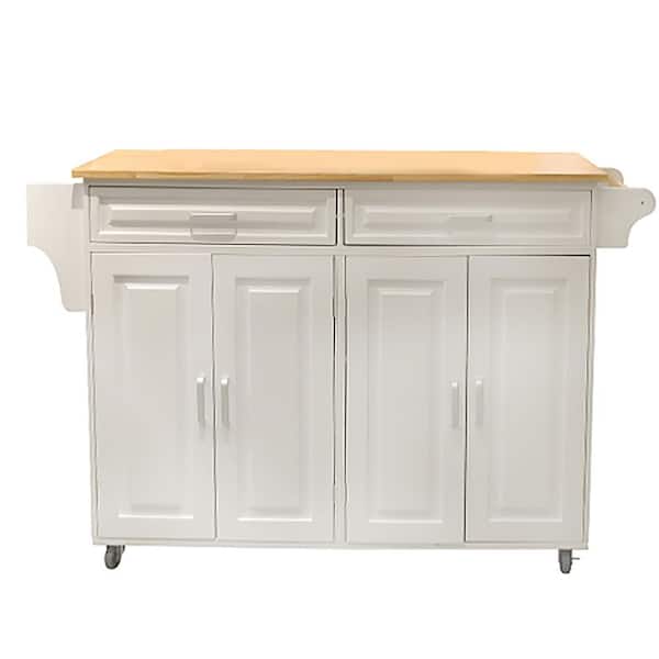 White Rubber wood Kitchen Cart with Spice Rack and Towel Rack