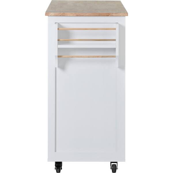 White Rubber wood Kitchen Cart with Spice Rack and Towel Rack