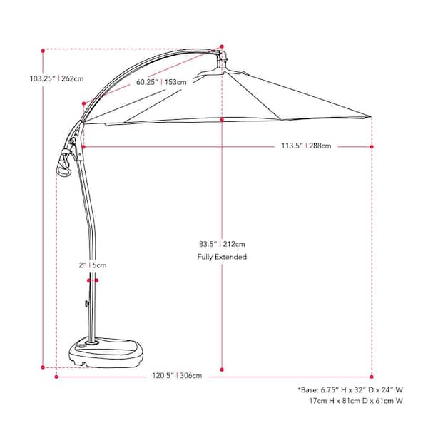 • Heavy duty cantilever umbrella, support base included