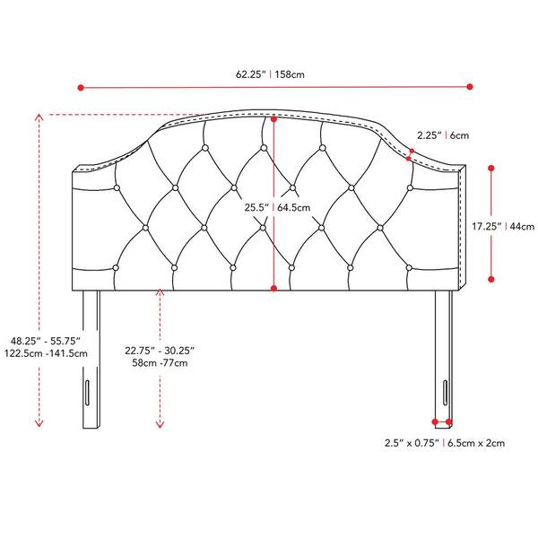 Calera Dark Grey Queen Diamond Button Tufted Fabric Arched Panel Headboard