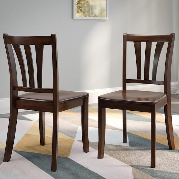 Dillon Cappuccino Stained Solid Wood Curved Vertical Salt Backrest Dining Chairs (Set of 2)