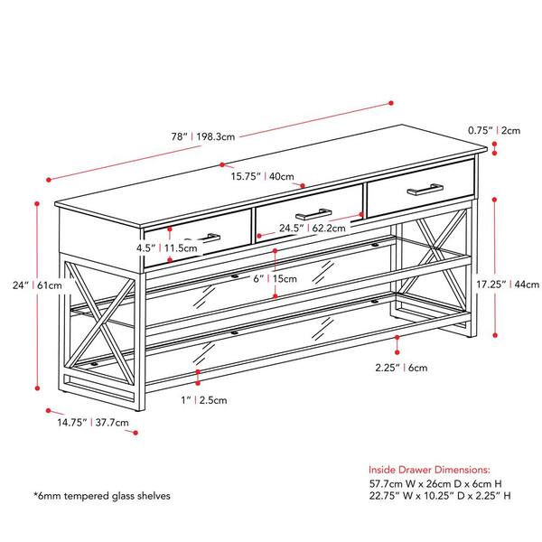 • 3 solid wood sliding drawers with powder-coated steel handles