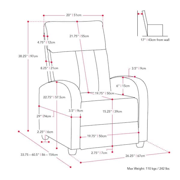 • Pushback recliner style, no handles or buttons
