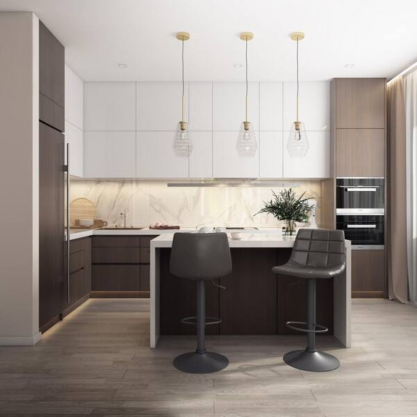 Palmer 44 in. Grey Adjustable Low-Back Square Tufted Leatherette Metal Barstool (Set of 2)
