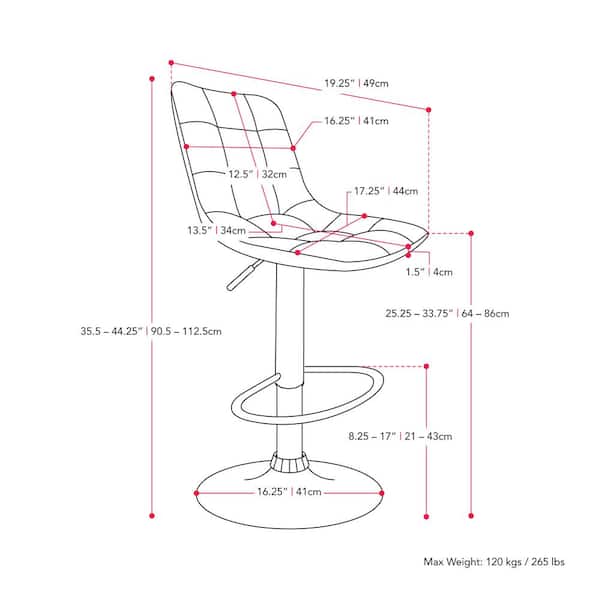 Palmer 44 in. Grey Adjustable Low-Back Square Tufted Metal Barstool (Set of 2)