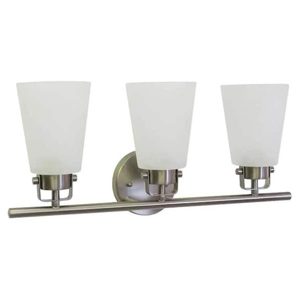 Cordelia Lighting 20.5 in. 3-Light (LED Bulbs Included) Brushed Nickel Farmhouse Vanity Light with Frosted Glass Shades