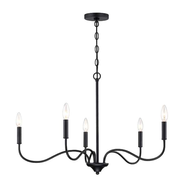 Cordelia Lighting 5-Light Matte Black Minimalist Candle Chandelier for Dining Areas with No Bulbs Included