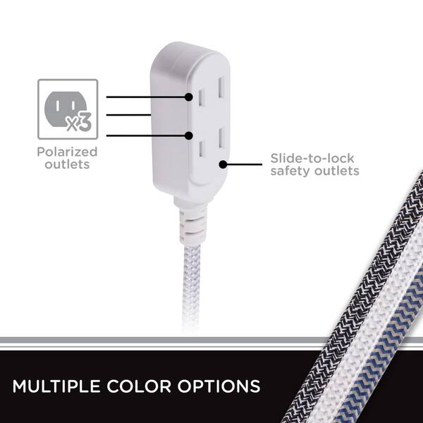 3-Outlet Polarized Power Strip with 15 ft. Braided Cord, Gray