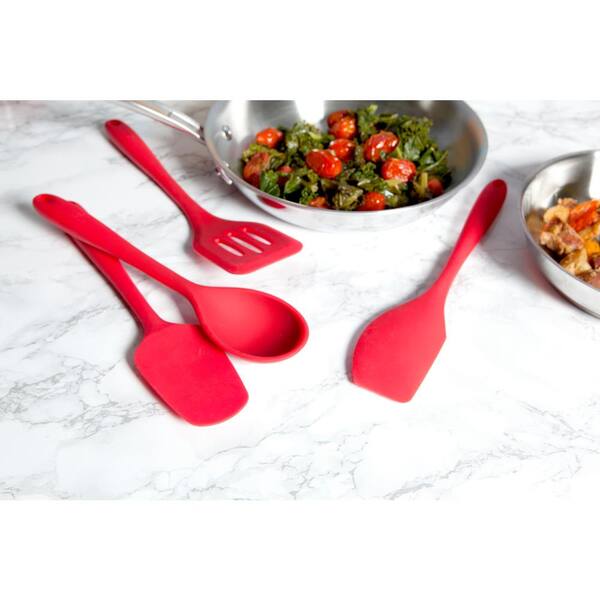 • Includes slotted turner, spatula, pointed spatula, and spoon