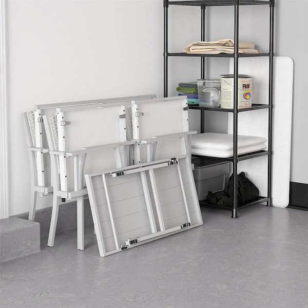 4-Piece Metal Patio Conversation Set Folding with Ligh Grey Cushions
