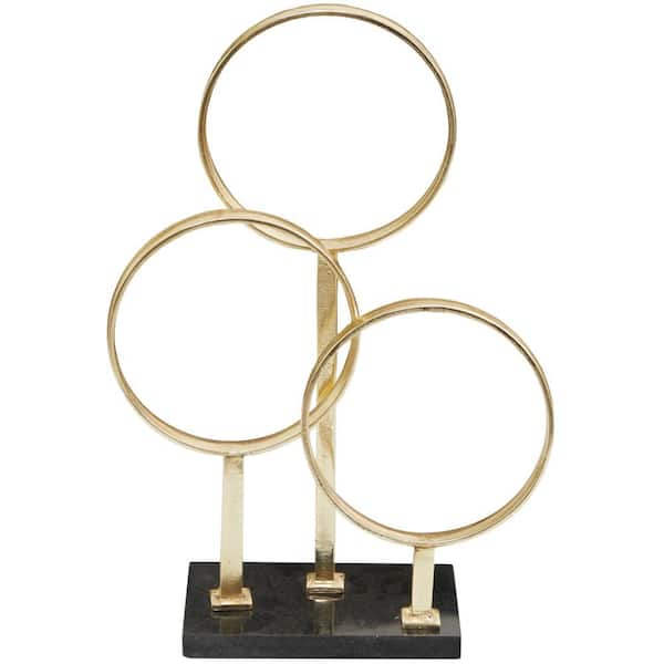 6 in. x 21 in. Gold Aluminum 3 Rings Abstract Sculpture with Black Base