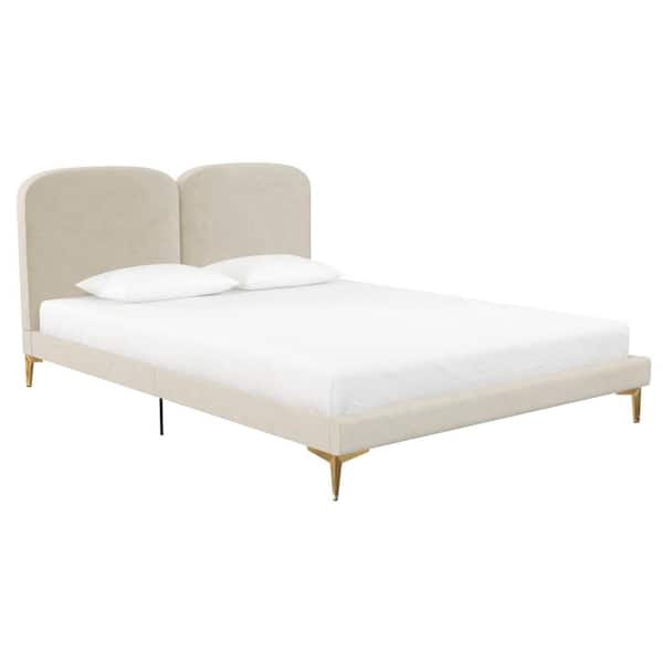 CosmoLiving White Wooden Frame Queen Platform Bed With Upholstered Headboard