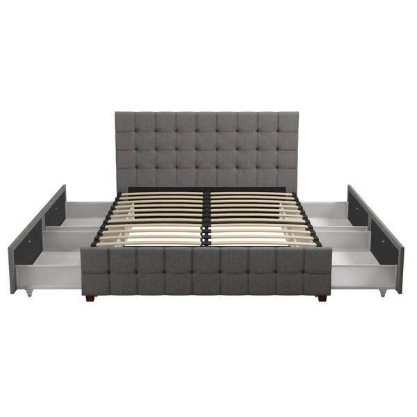 Elizabeth Gray Linen Upholstered Queen Size Bed with Storage