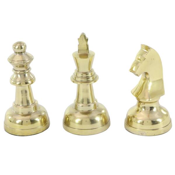 Gold Aluminum Chess Sculpture with Knight, Queen and King (Set of 3)