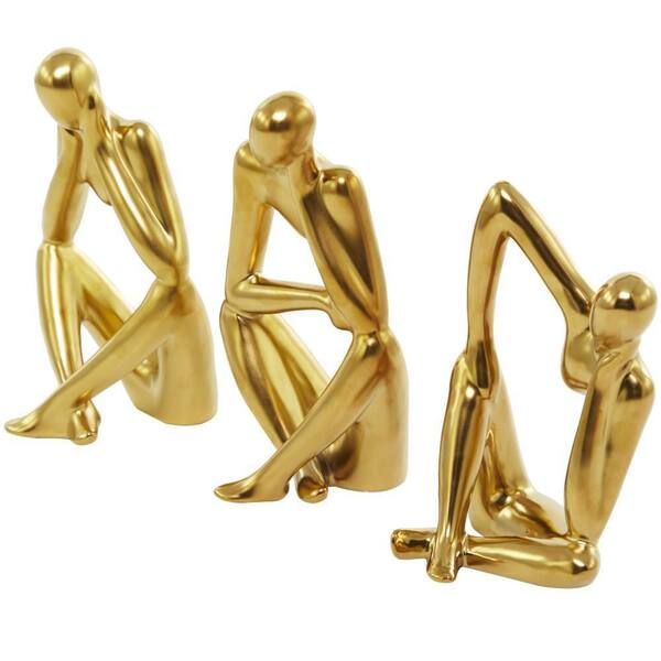 Gold Porcelain Sitting Thinker People Sculpture (Set of 3)