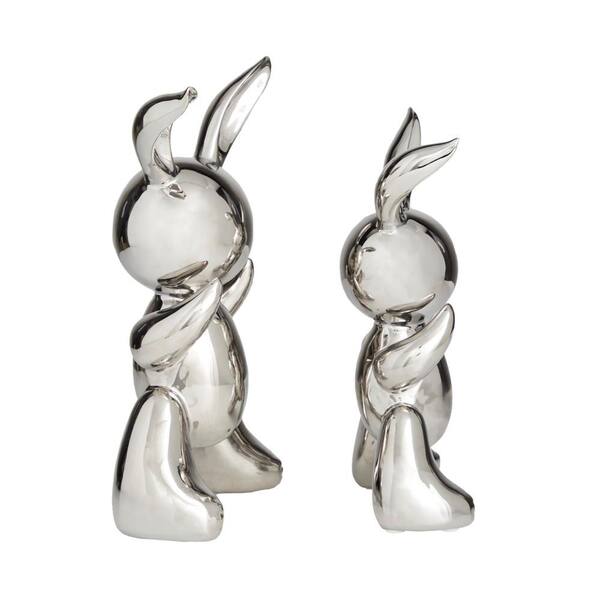 Silver Porcelain Abstract Balloon Rabbit Sculpture (Set of 2)