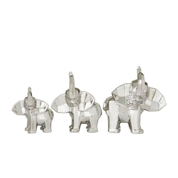 Silver Porcelain Cubist Elephant Sculpture (Set of 3)