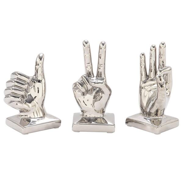 Silver Porcelain Hands Sculpture (Set of 3)