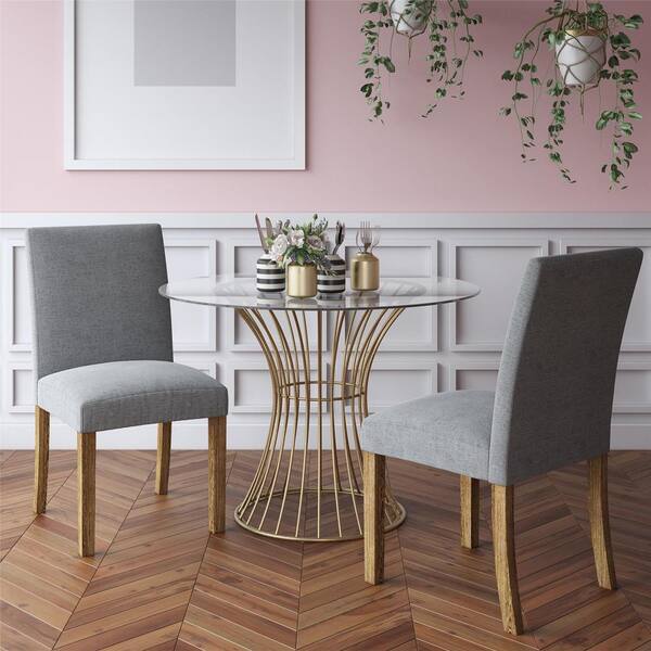 Westwood Glass Top Dining Table, Tempered Glass with Soft Brass