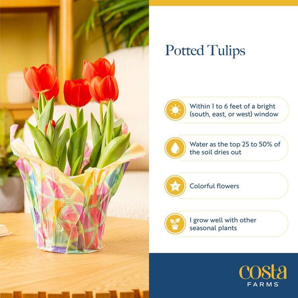 6 in. Yellow Tulip Plant in Easter Decor Mylar Wrap, Average Shipping Height 10 in. Tall