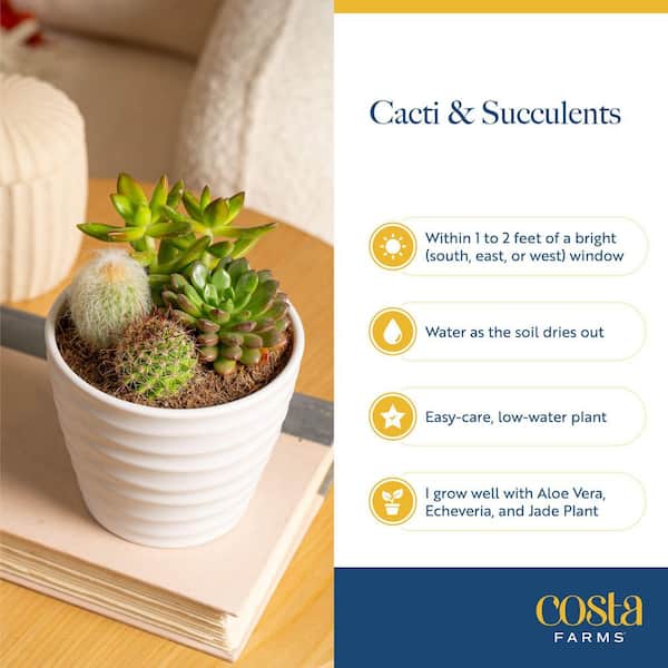 • Drought-tolerant succulents survive in bright, indirect light