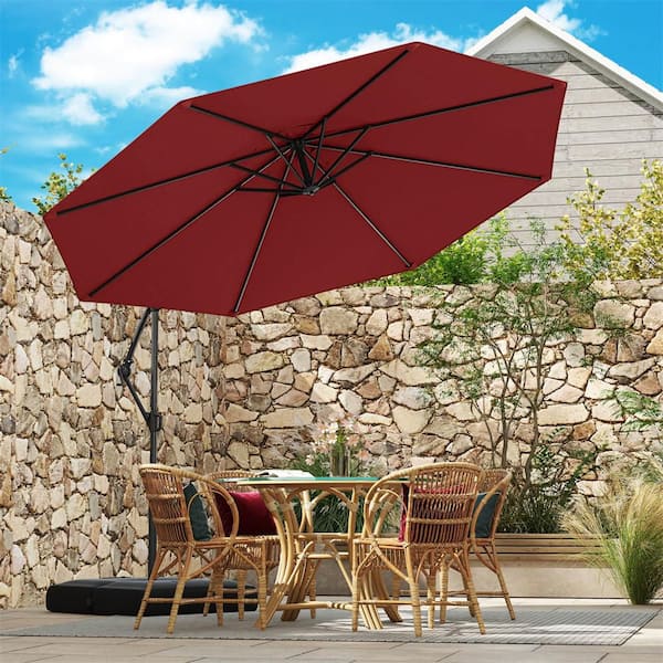 10 ft. Metal Tilt Cantilever Patio Umbrella Offset Hanging Umbrella with Base 360° Rotation in Red