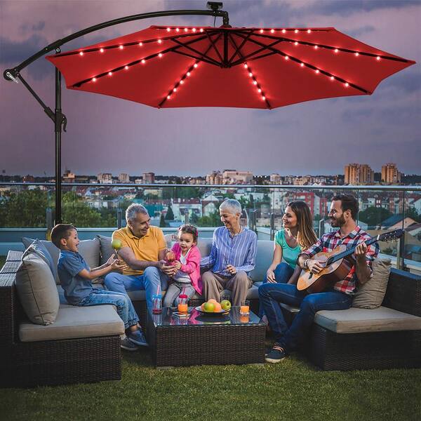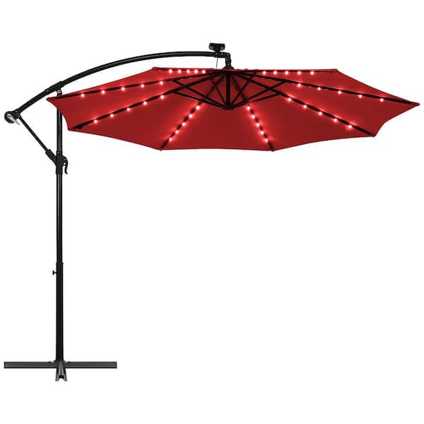 10 ft. Patio Metal Market Solar Tilt Patio Umbrella in Wine