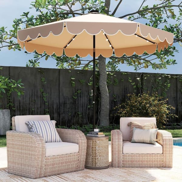 10 ft. Solar Market Patio Umbrella with 24 LED Lights 8 Ribs and Tilt Adjustment in Coffee